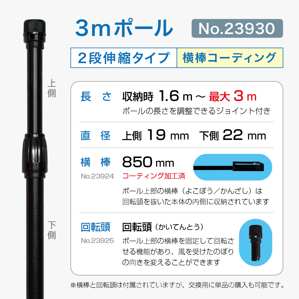 のぼり旗 ポール 3m 2段伸縮 オールブラック 横棒850mm No.23930 [23930]