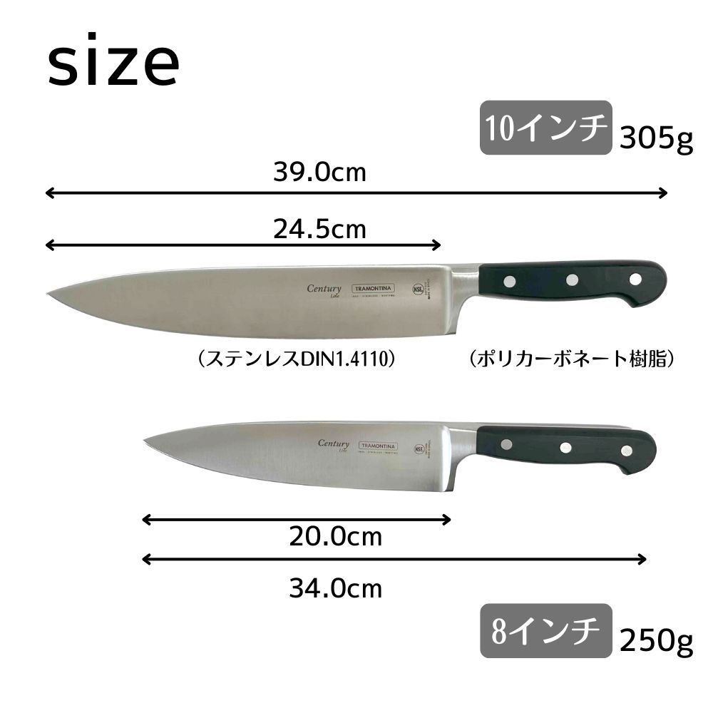 シェフズナイフ 牛刀 包丁 200mm 245mm Century 24011/108 24011/110【直送商品】