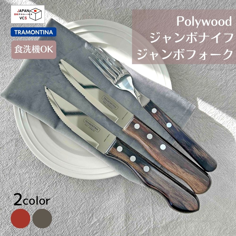 ジャンボフォーク・ジャンボナイフ(レッド・ダーク) (食洗機対応)ステンレス ポリウッド Polywood (21136/070・090 21116/075・095 21115/075・095)【直送商品】
