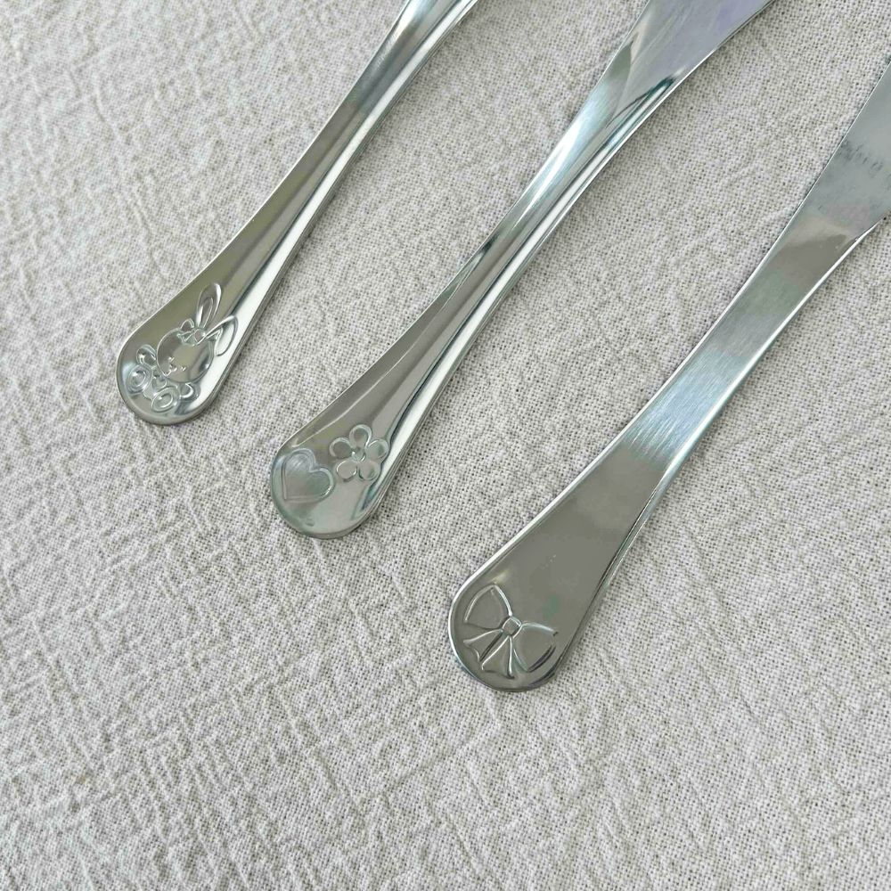 可愛いキャラクターデザインのカトラリーは、自分でナイフやフォークを使ってみたいお年頃のお子様の成長を応援します。